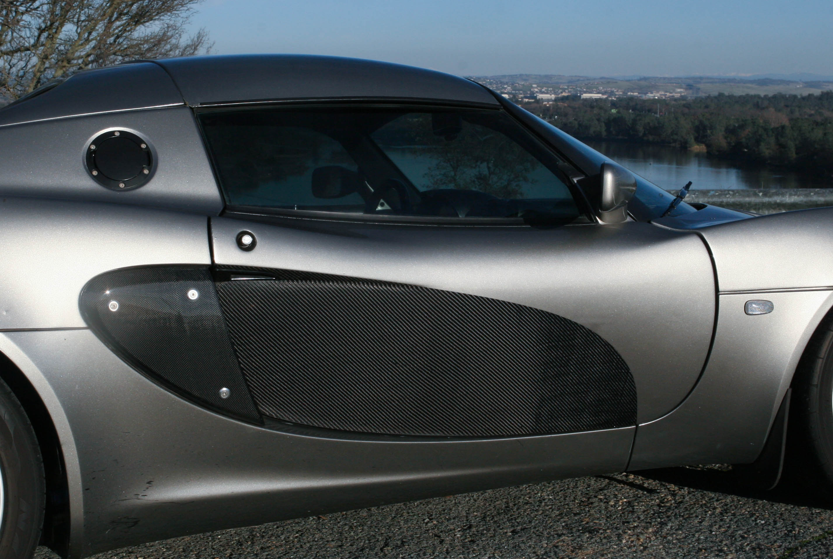 on these cars while the rear tie rod kit makes this Elise more track-worthy. The carbon fiber doors have been painted to match the car with a unique