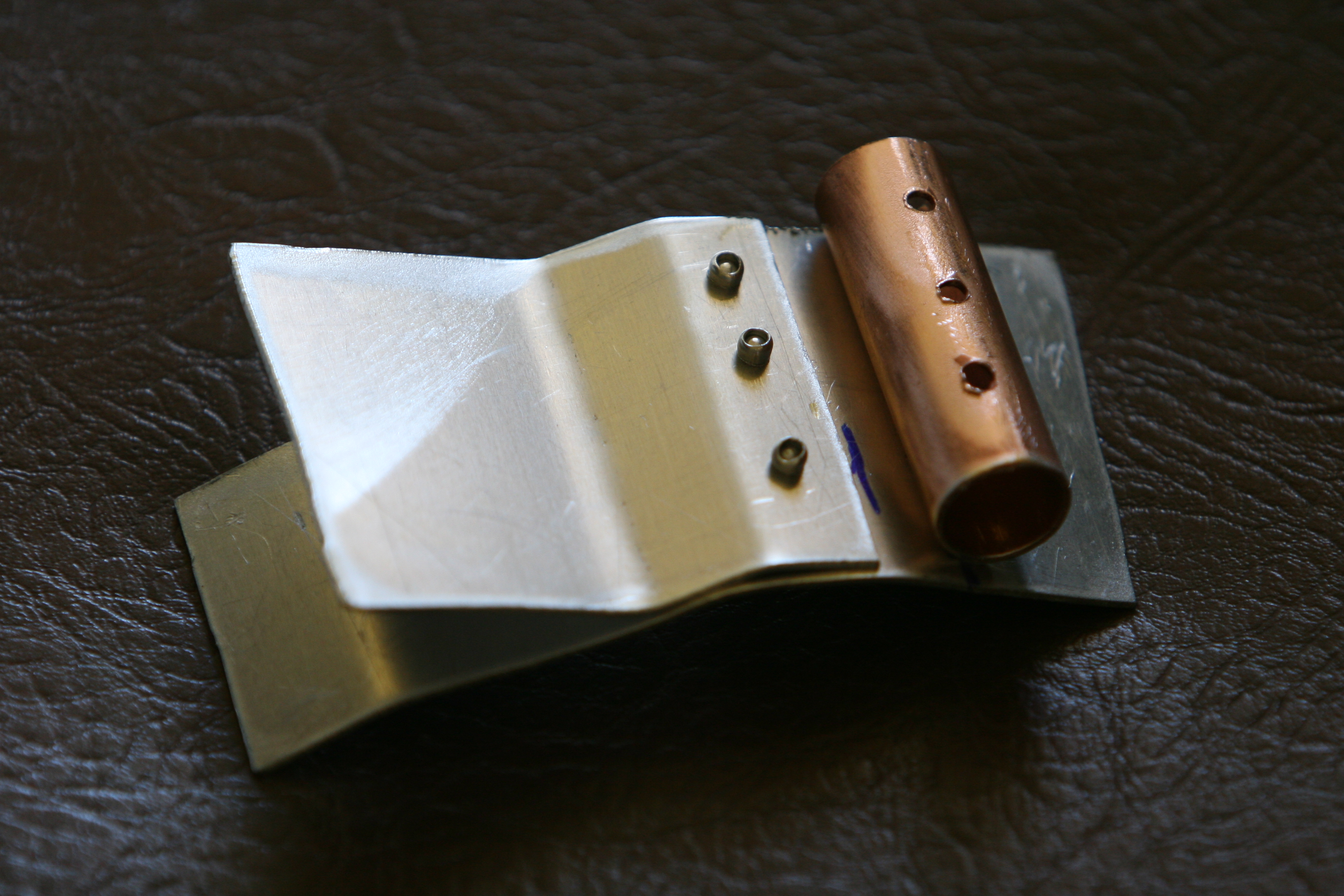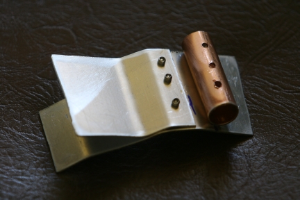 The finished piece. The copper pipe provides support for the bolt that runs through the plastic cover,