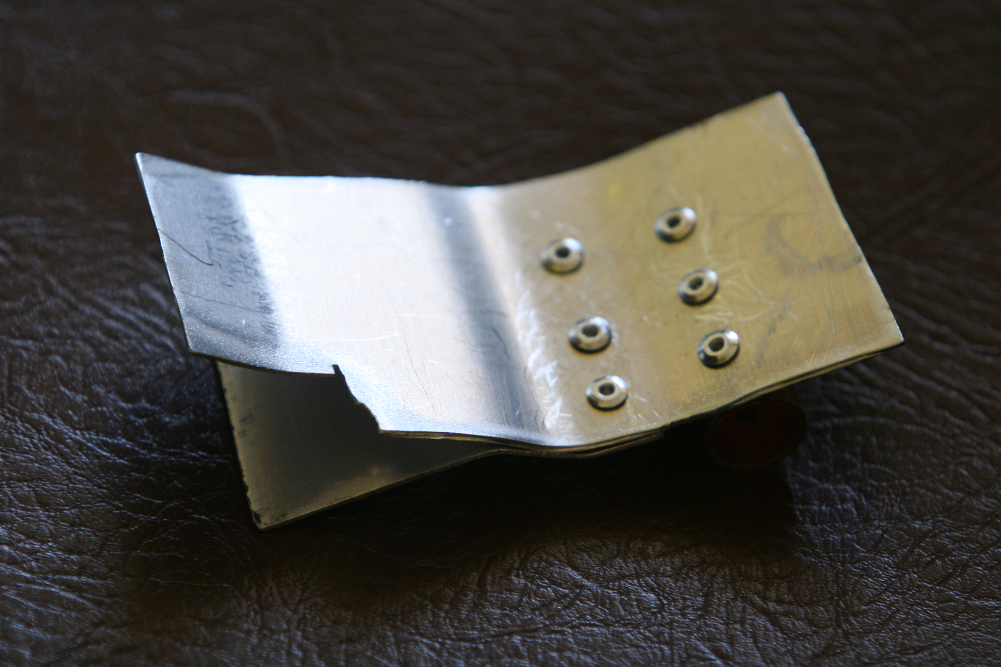 in a gap not covered by the plastic cover. In about 20 minutes I came up with the aluminum cover below to close the gap.