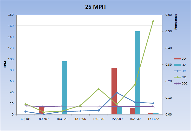 | Date | Result | Mileage | Cost | RPM | MPH | Max HC |