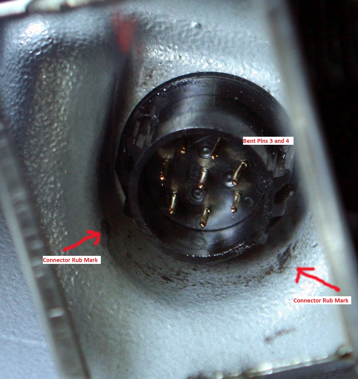 Below: The two black marks to the left and right and below the connector on the casting are from where the connector is rubbing on the casting.