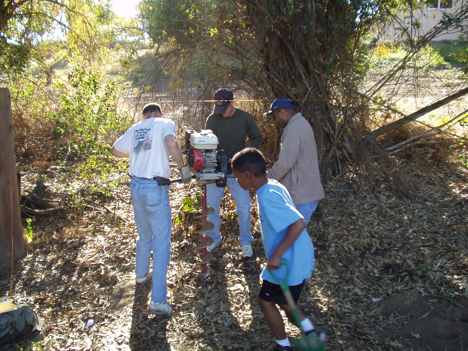 After that, each of us would sit on a handle of the auger. |