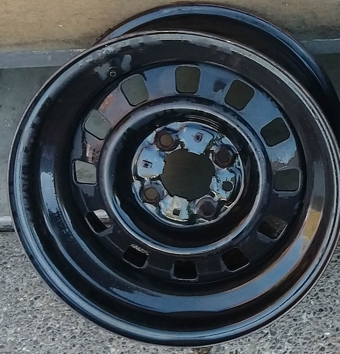 This wheel is the worst of the lot with some rust showing through the black enamel. The rest of the wheels are in good shape.