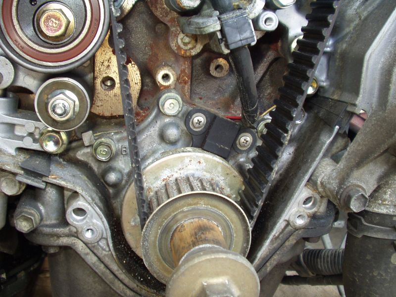 that serves as part of the timing cover. The 3.2L oil pump lacks this extension because the hydraulic belt tensioner serves