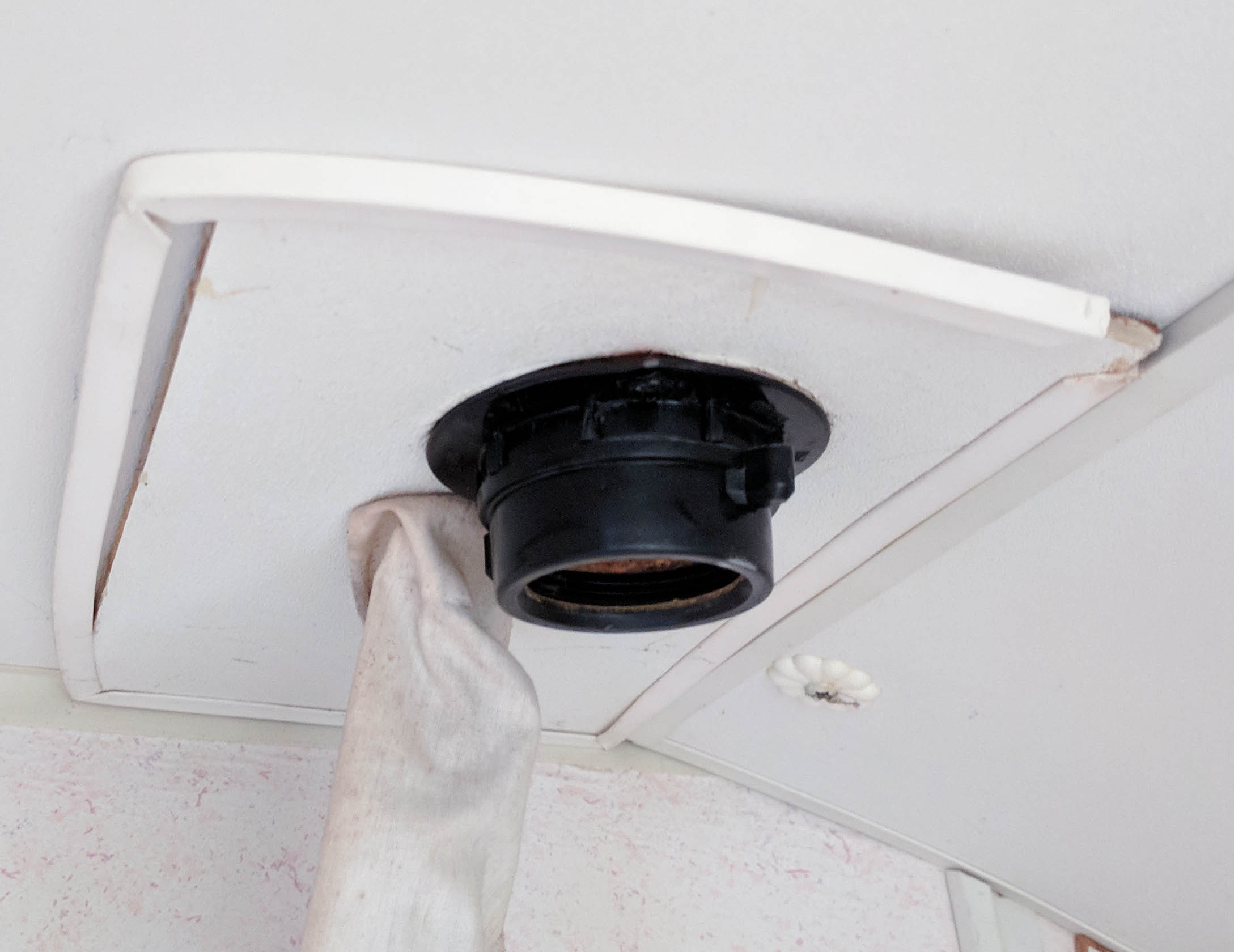 I'm not sure why, but at some point, the flange on the stick pipe broke and caused it to fall down. This pipe essentially vents the blackwater tank outside the