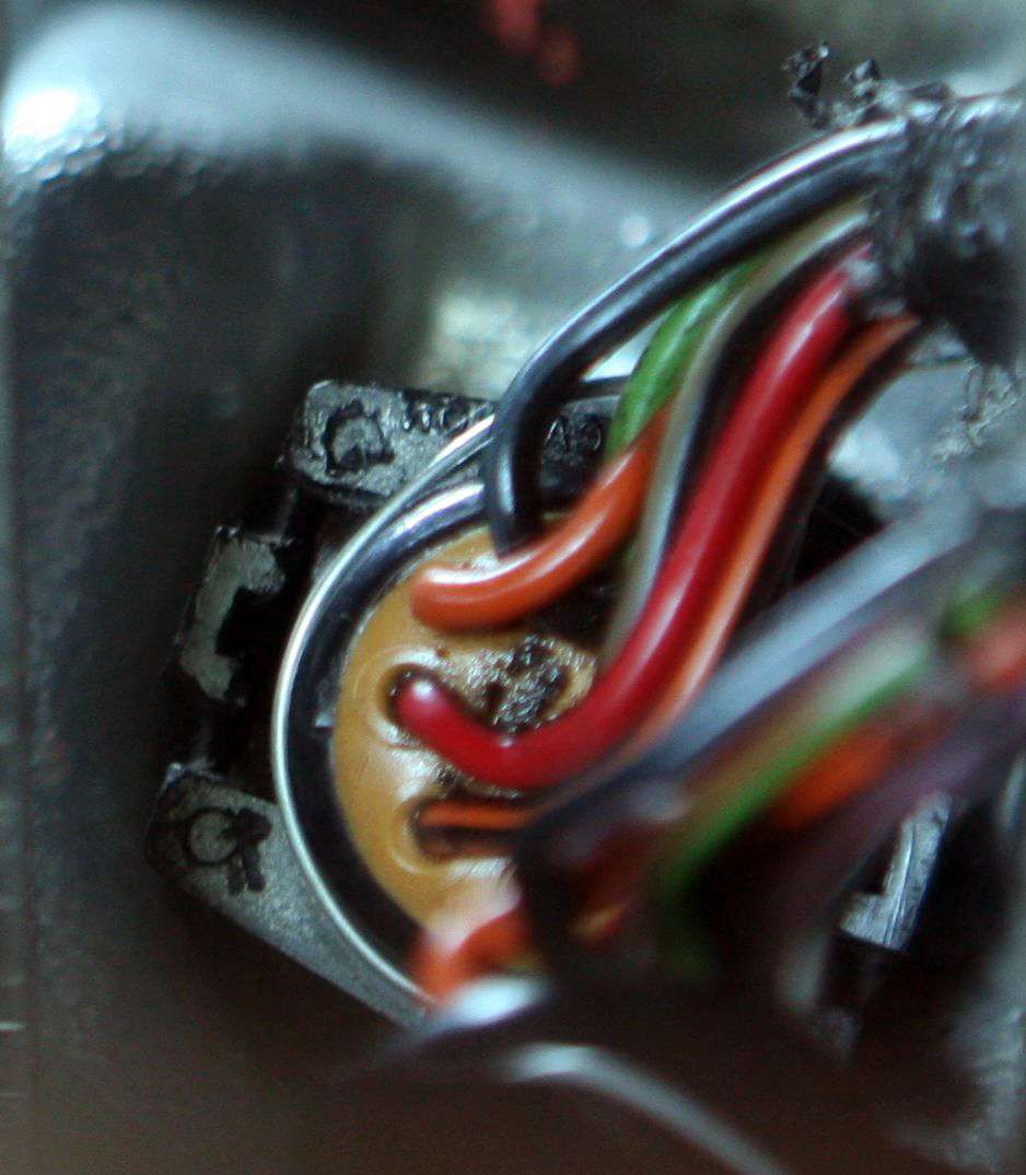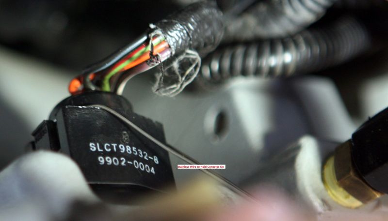 Below: The lower left corner or the harness connector tells the story - the corner has been worn away and the locking clip is broken.