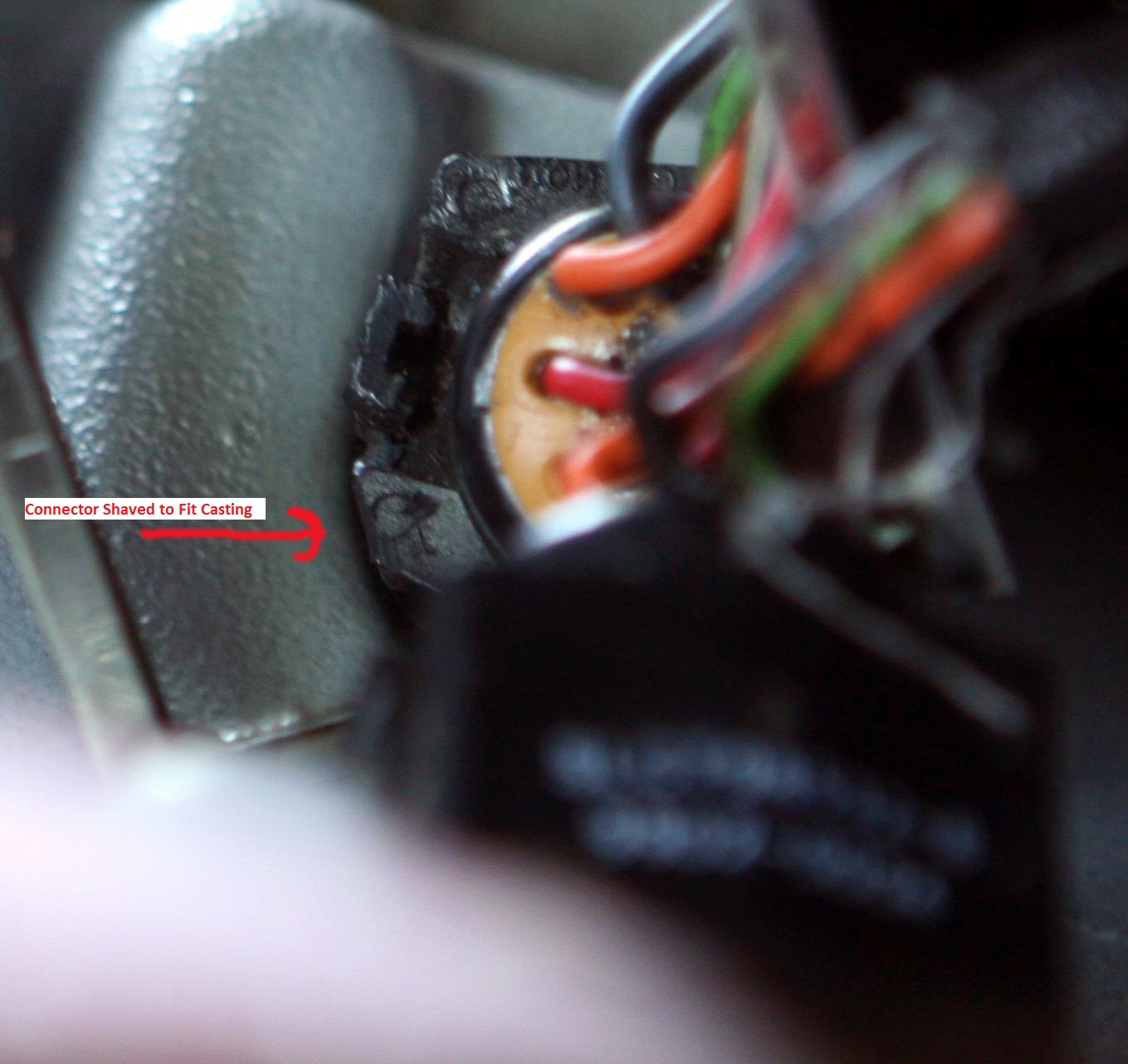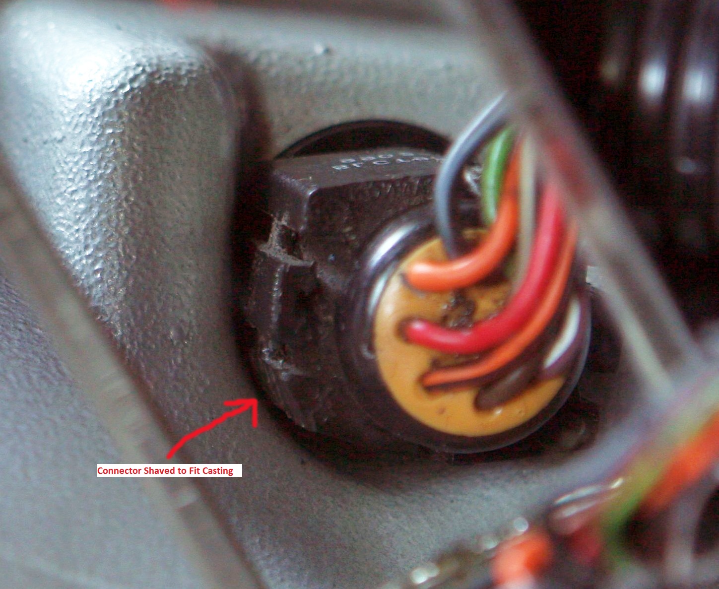 Below: The two black marks to the left and right and below the connector on the casting are from where the connector is rubbing on the casting.