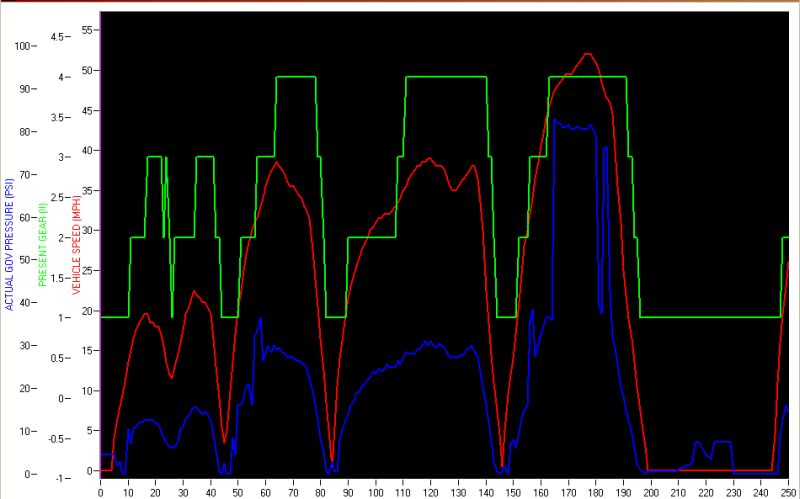 I changed out the Governor Pressure Sensor and Solenoid and things got worse. The "Actual Governor Pressure" indicated is zero now, although the truck shifts normally. It is still sluggish. It feels like I'm starting out in 3rd gear, but the data log shows first gear.